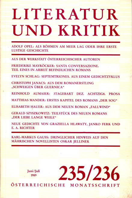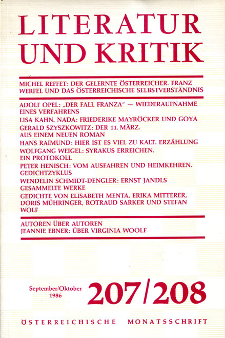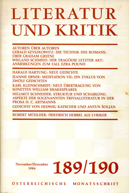 Literatur und Kritik, herausgegeben von Jeannie Ebner, Rudolf Henz und Kurt Klinger, Otto Müller Verlag Salzburg 1984