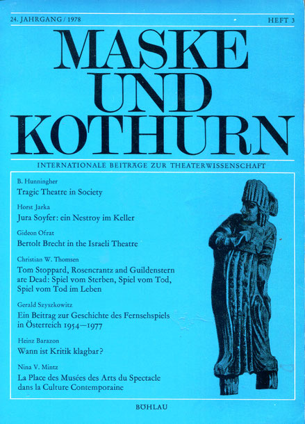 Maske und Kothurn, herausgegeben von Heinz Kindermann, Verlag Böhlau Graz 1978
